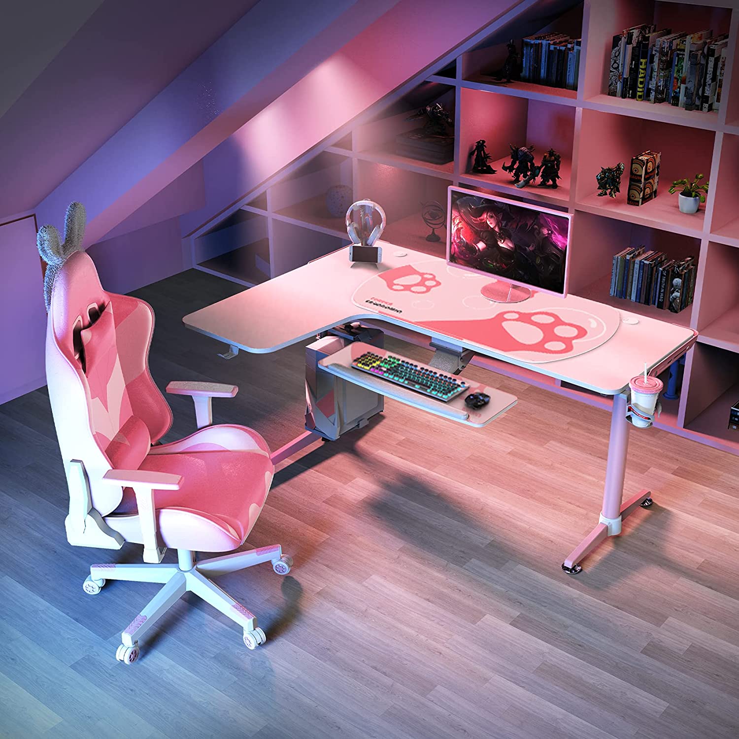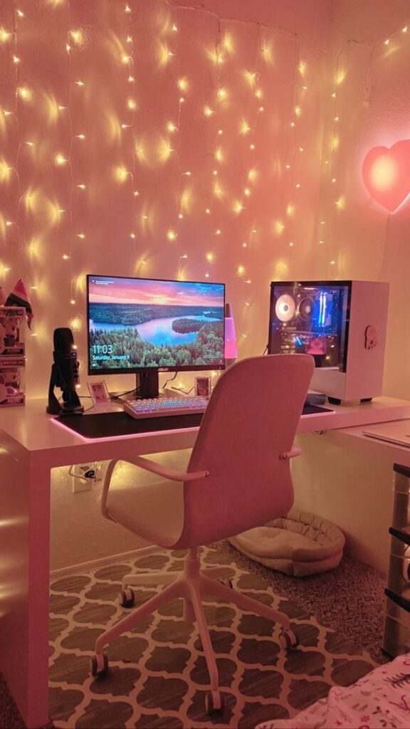 The desk is important because that’s where you put your gaming PC or gaming laptop. Desks are available in fun colors such as pink, purple, white and black. You can opt for an electric desk or you can opt for a desk with a feminine look.
